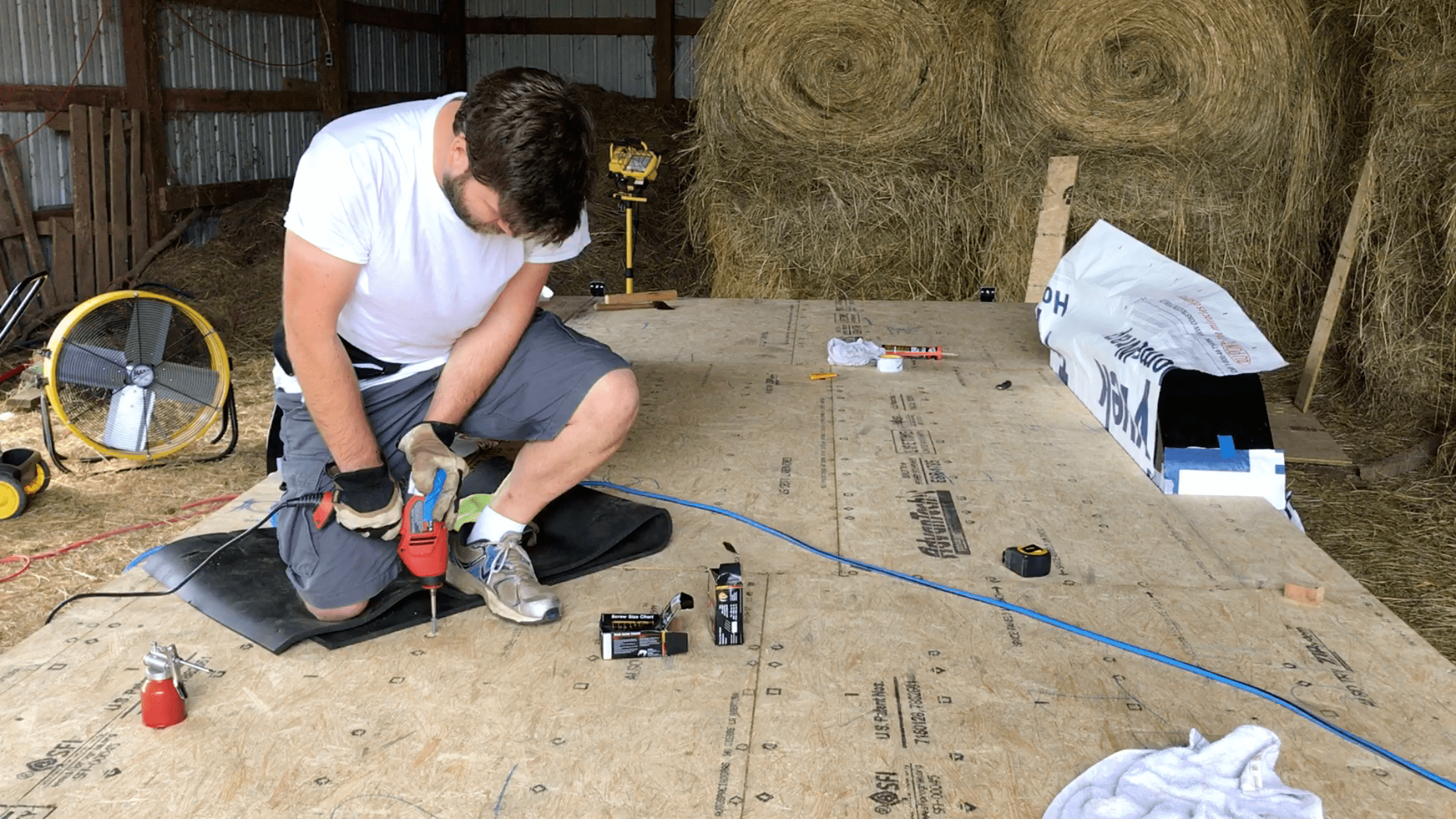 The next day, after coffee, breakfast, and some procrastinating (our daily ritual), we made it out to the barn to assess the situation. The verdict? Not so bad. Maybe about 10% of the bugs were still there, however, many of those left were underneath the Roxul. So we decided to pull up each strip of Roxul, one at a time, and shop-vac the little bastards. The next step was laying down the Tyvek vapor barrier (a thin waterproof paper-like material) to be sandwiched in between the insulation and the subfloor. Buuuttt….it seems these bugs like Tyvek even more than they like freshly laid insulation! The battle continued!